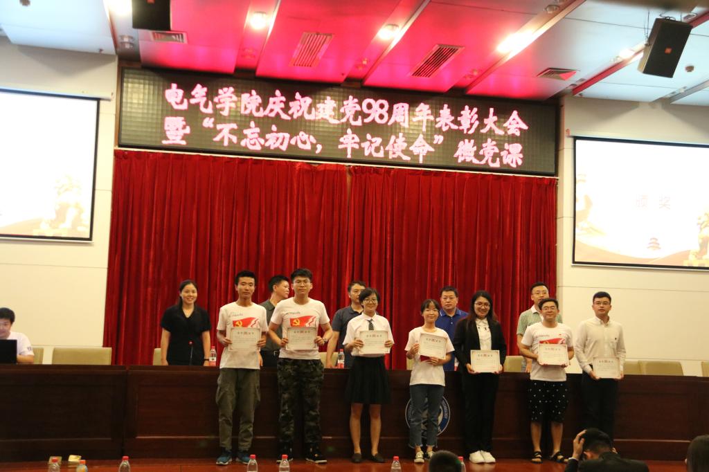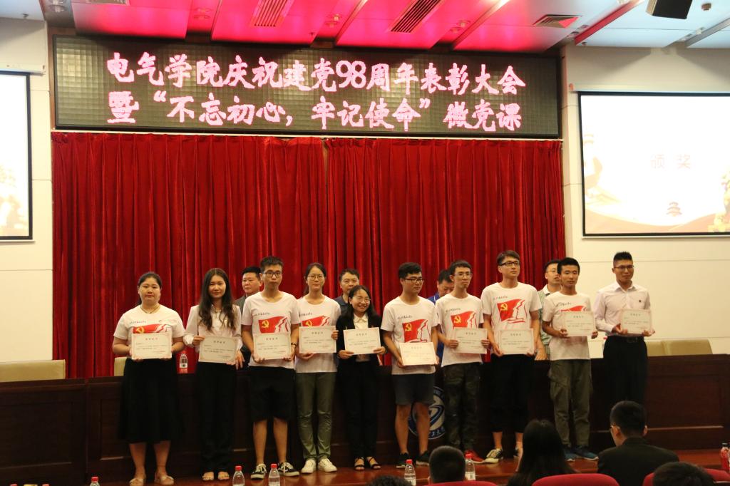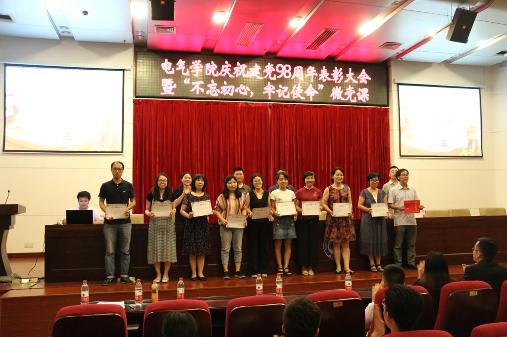 7月2日下午,电气学院庆祝建党98周年表彰大会暨“不忘初心,牢记使命”微党课在图书馆报告厅举行。全院师生党员及入党积极分子代表近300人参加,学院党委副书记丁丹主持大会。