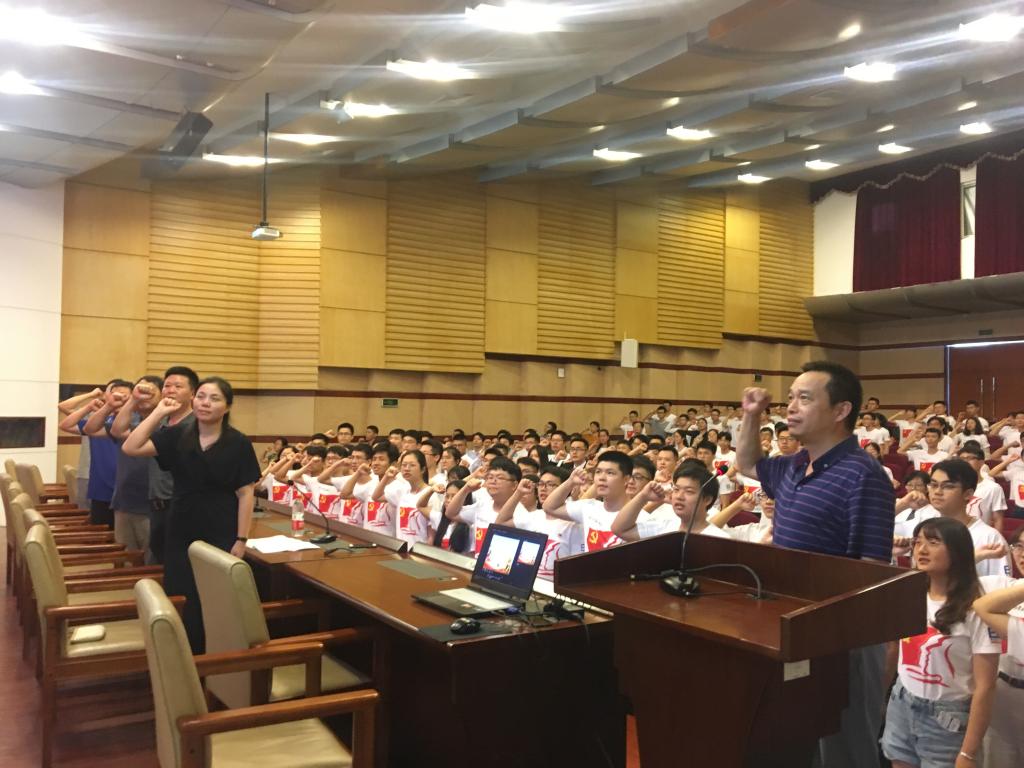大家高唱国歌,开启大会序幕;面向党旗,老党员重温誓词,新党员庄严宣誓。学院党委委员、副院长夏向阳宣读了学院党委《关于表彰“学习强国”APP理论学习积极分子的决定》和学生党总支《关于表彰2019年优秀党务工作者、优秀共产党员、优秀下班党员的决定》。