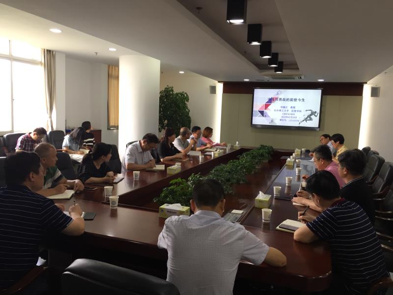 7月10日下午,经管学院刘建江教授在一办四楼会议室,为机关一总支全体党员讲了一堂《中美贸易摩擦的前世今生》的精彩党课。党课由总支书记周艳红主持,校党委书记付宏渊同志以普通党员身份参加。