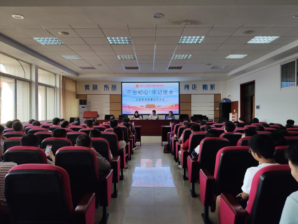 丁丹宣读了学院党委“不忘初心、牢记使命”主题教育实施方案。院党委书记符慧林传达学校主题教育实施方案和工作大会的精神,并从四个方面做了工作部署与动员。他指出,搞好学院“不忘初心、牢记使命”主题教育,一要解决好政治站位问题;二要解决好思想认识问题;三要对标先锋模范典型,深化作风建设;四要真抓真改,确保主题教育有实效。他强调,学院领导班子和全院党员同志要把握好主题教育的总要求和具体目标,找准学院工作的差距、找准自身存在的差距,抓实整改出成效。
