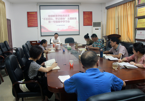 9月20日,继教学院党总支班子成员集中在金盆岭校区15教三楼会议室,沉下心来认真学习。党总支书记何纯芳主持学习活动。