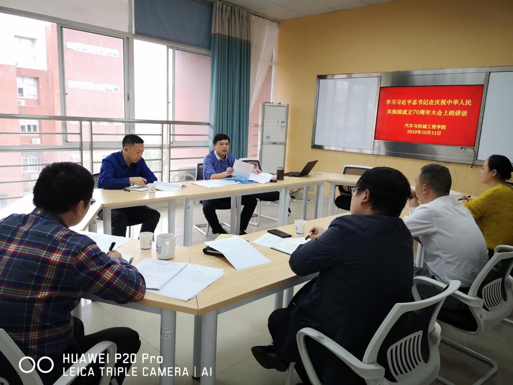 10月11日,汽机学院党委中心组召开学习会议,学习习近平总书记在庆祝新中国成立70周年大会上的重要讲话精神。