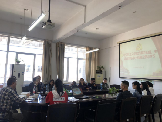 10月21日上午,马克思主义学院党委中心组、主题教育领导小组的理论集中学习在云塘校区文科楼B601开展。本次学习会议由副院长梁建新主持,17级研究生党支部书记焦浩源主讲,院中心组、主题教育领导小组成员、17级研究生党员也参加了本次学习和交流。
