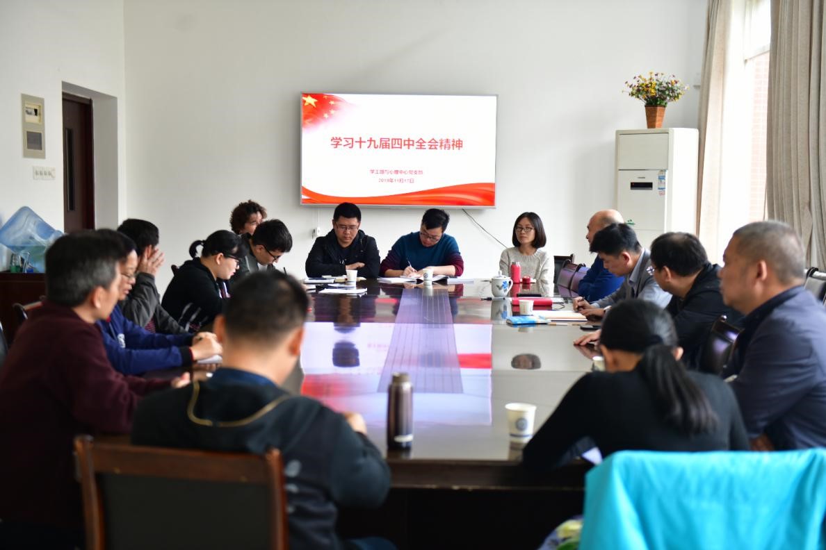 11月17日上午,学工部与心理中心党支部在学工部会议室举行党的十九届四中全会精神专题学习。支部书记艾楚君主持,全体支部党员参加了学习。