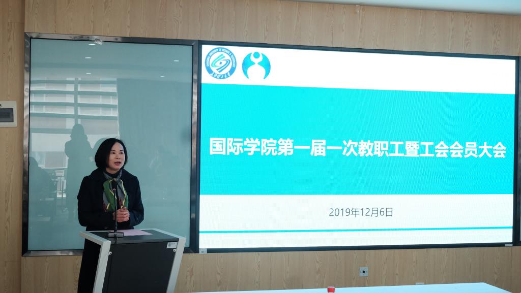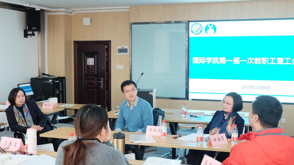 12月6日下午,国际学院第一届一次教职工暨工会会员大会在新能源大楼1栋404室举行。学校党委委员兼学院党总支书记付嫦娥主持会议,学院全体教职工参加。