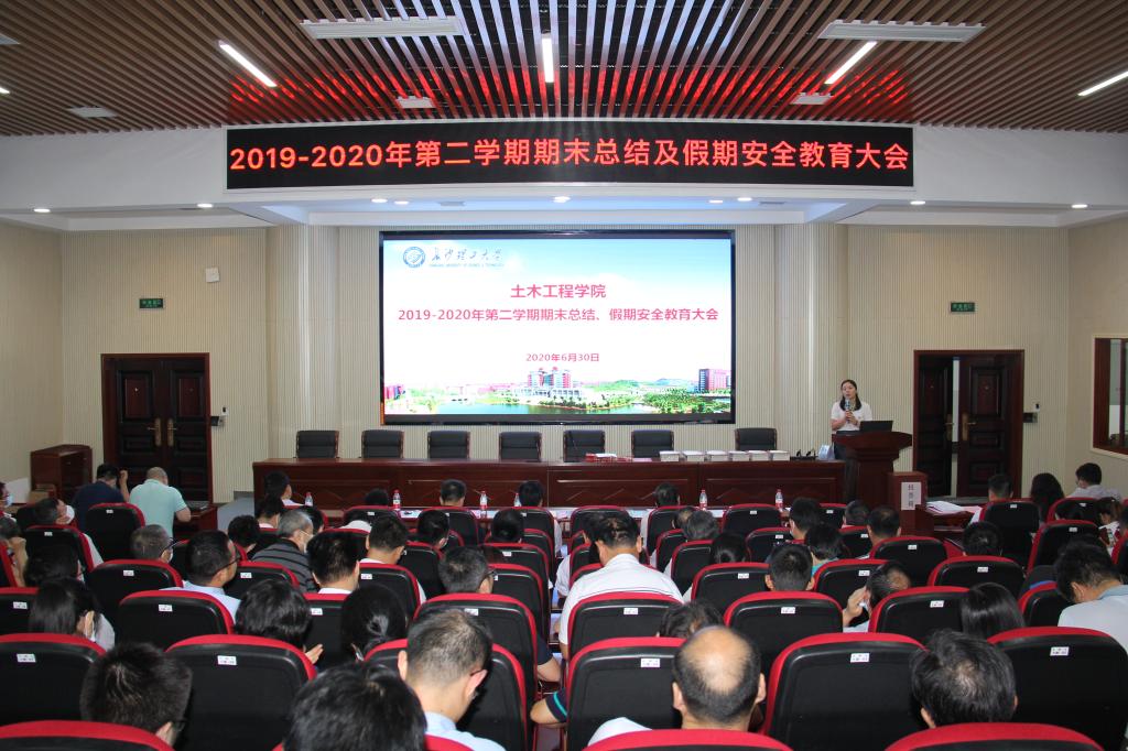 6月30日,土木学院在工科二号楼学术报告厅召开了2019-2020学年第二学期期末总结暨假期安全教育大会。全体院领导及教职工参加会议,院党委副书记丁丹主持大会。