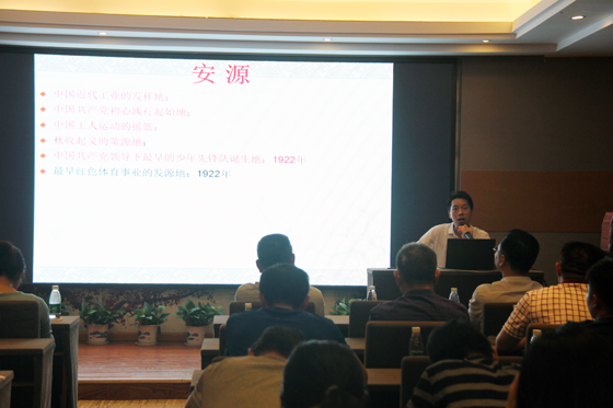 安源路矿工人运动纪念馆讲师黄领为大家作了一堂题为《毛泽东开创安源革命斗争的伟大实践及其现实启示》的讲座。他从毛泽东的早期思想入手,讲述毛泽东与安源的历史渊源,以毛泽东先后八次到安源开展革命运动的历史事件,具体阐述毛泽东如何开创安源革命的伟大实践和十年波澜壮阔的安源革命斗争史,及其现实启示。