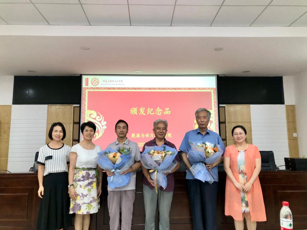 “戴曙光老师在超额完成教学工作任务之外,还把大量的时间和精力奉献在学校学院公用教育教学的设备资产统计和管理方面,荣获了学校优秀教职工(2019年度)等荣誉”,能源与动力工程学院党委副书记、副院长靳攀科在讲台上向全院教职工深情讲述到。7月8日下午,学院为王运民、戴曙光、饶洪德三位退休老教师举办了一场特殊的荣休仪式,为各位老师送上了温馨且有意义的荣休礼物。