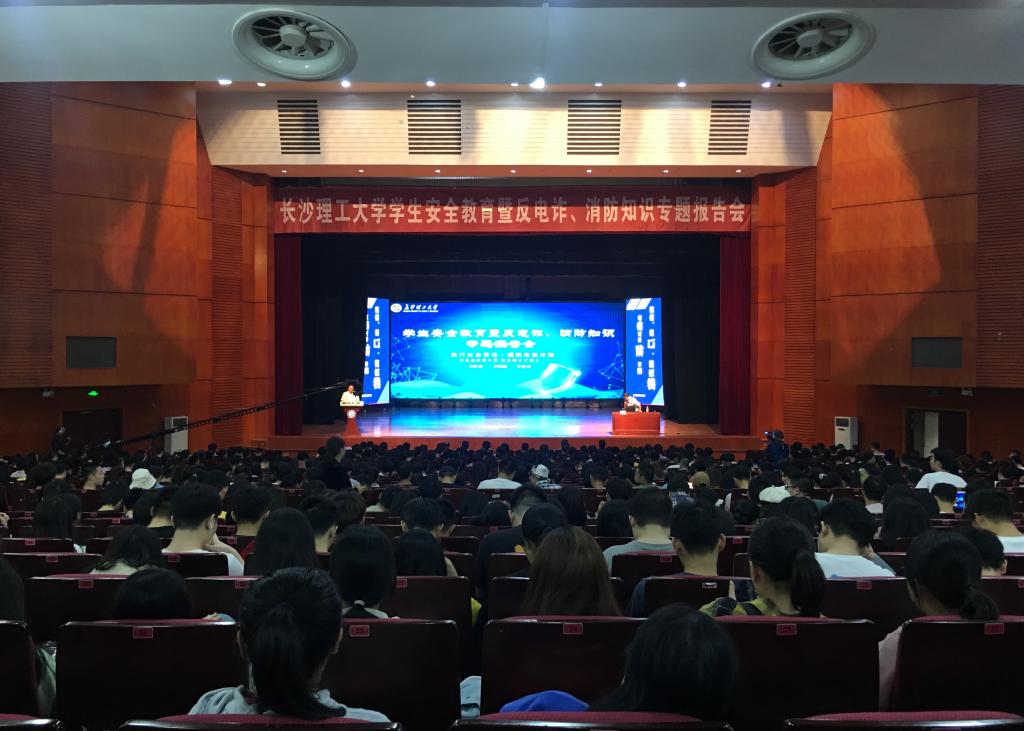 本次报告会在云塘校区大会堂设主会场,在金盆岭校区五教大礼堂和两个校区的多媒体教室组织全体在校学生在线观看网络同步直播,全校4万余名师生同上一堂生动有意义的安全教育课。