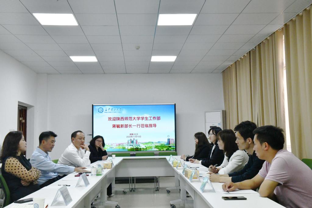 11月10日下午,陕西师范大学学生工作部(处)蒋毓新部(处)长一行6人到LETOU官网学工部进行调研。校学工作部部长艾楚君,土木学院党委书记丁丹,学工部副部长贺良参加交流座谈。