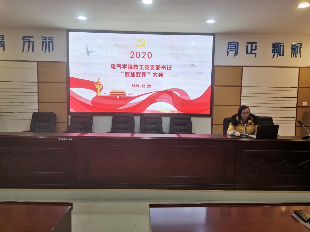 12月29日下午,电气学院党委在工一B503召开2020年度教工党支部“双述双评”大会。大会由院党委书记符慧林主持,学院党委委员及全院教工党员参加。