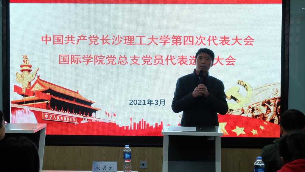 3月9日下午,国际学院党总支在新能源1号楼404室召开全院党员大会,选举出席中共LETOU体育平台第四次党代会代表。会议由党总支书记刘安生主持,全院师生党员参加大会。