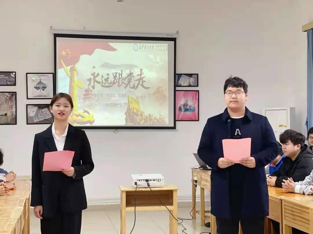 班会通过观看小视频、知识抢答、讲红色故事、朗诵等形式去引导学生们追寻红色足迹,充分解了党的光辉历史,切实领悟到中国共产党的初心和使命,学院领导也积极参与主题班会的讨论中。