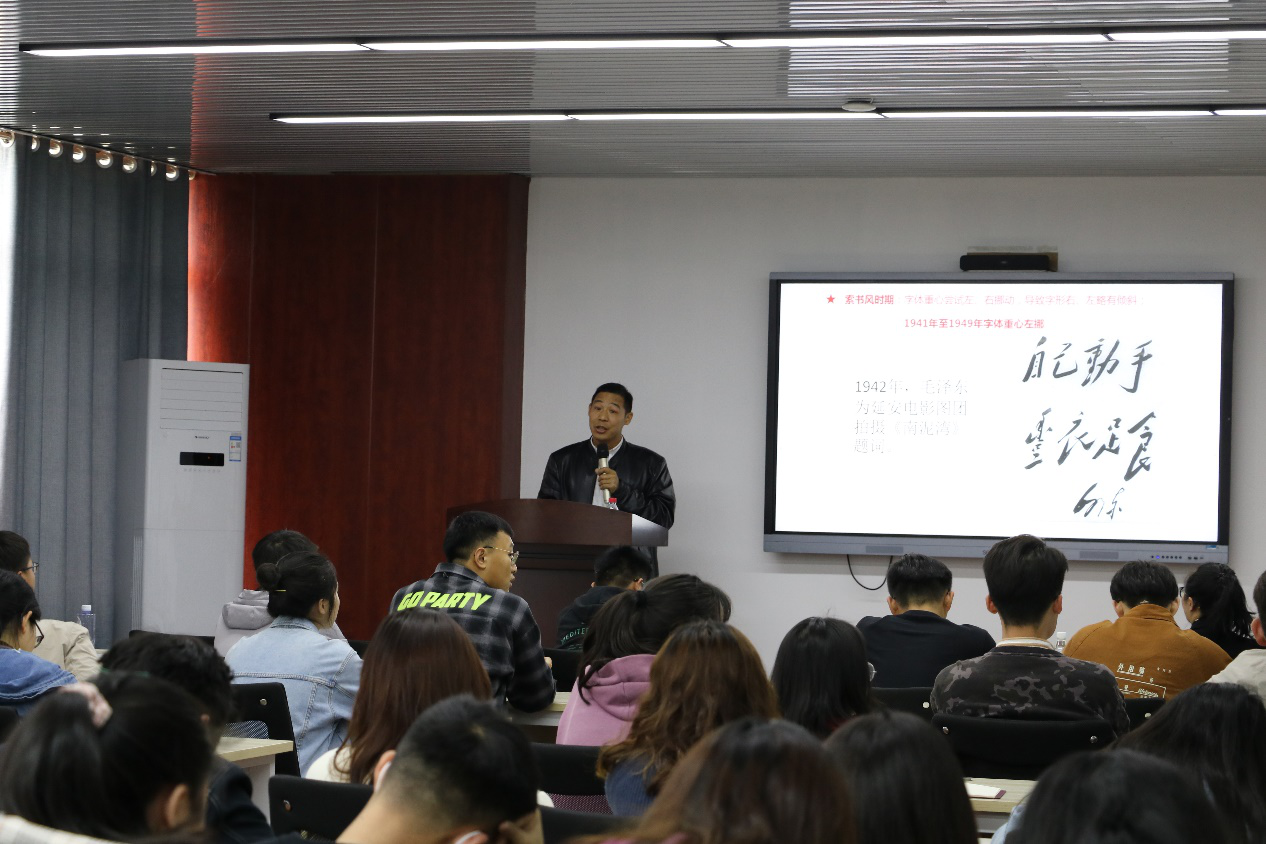 3月26日下午,建筑学院组织全体学生党员、发展对象、积极分子开展题为“从书法艺术角度探析为人民服务”党史教育专题宣讲会。宣讲会由著名毛体书法家童胜利先生进行讲授。