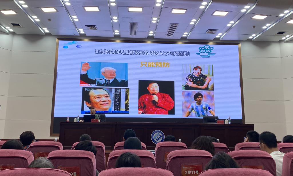 赵延恕教授首先介绍了心血管病的常见种类及流行趋势、历史及现状、农村及城市分布、危害、发病率、致残致死率、构成死亡原因、死亡率变化趋势,接着详细讲解了冠心病的常见危险因素、临床分型、诊治流程、药物治疗及预防措施等方面的知识。他还提出“一二一”健康理念,即:每天一万步,吃动两平衡,健康一辈子。在现场问诊环节,赵教授耐心细致地解答了教职工的提问。