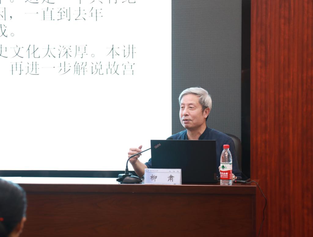仪式结束后,柳肃以《从故宫建筑看中国历史上的几个特殊时期》为题,从“明朝灭亡与清朝入关”、“清王朝晚期的西洋化”以及“故宫博物院”等六大方面,用精辟严谨的论述,渊博深厚的专业知识、理论联系实际的梳理讲解,把百年建筑和历史结合起来,为现场师生带来了一场精彩的文化盛宴。