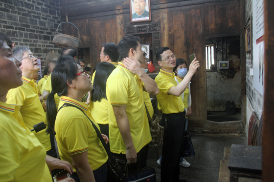 在沙洲广场,全体党员在党总支书记何纯芳带领下,面对党旗,举起右手,重温入党誓词,铿锵有力的入党宣誓响彻整个广场。在“半条被子的温暖”专题陈列馆、故事发生地旧址和中国工农红军总卫生部旧址等处,大家认真聆听讲解,驻足观看历史文物照片,共同深情缅怀革命历史,追寻红色记忆。