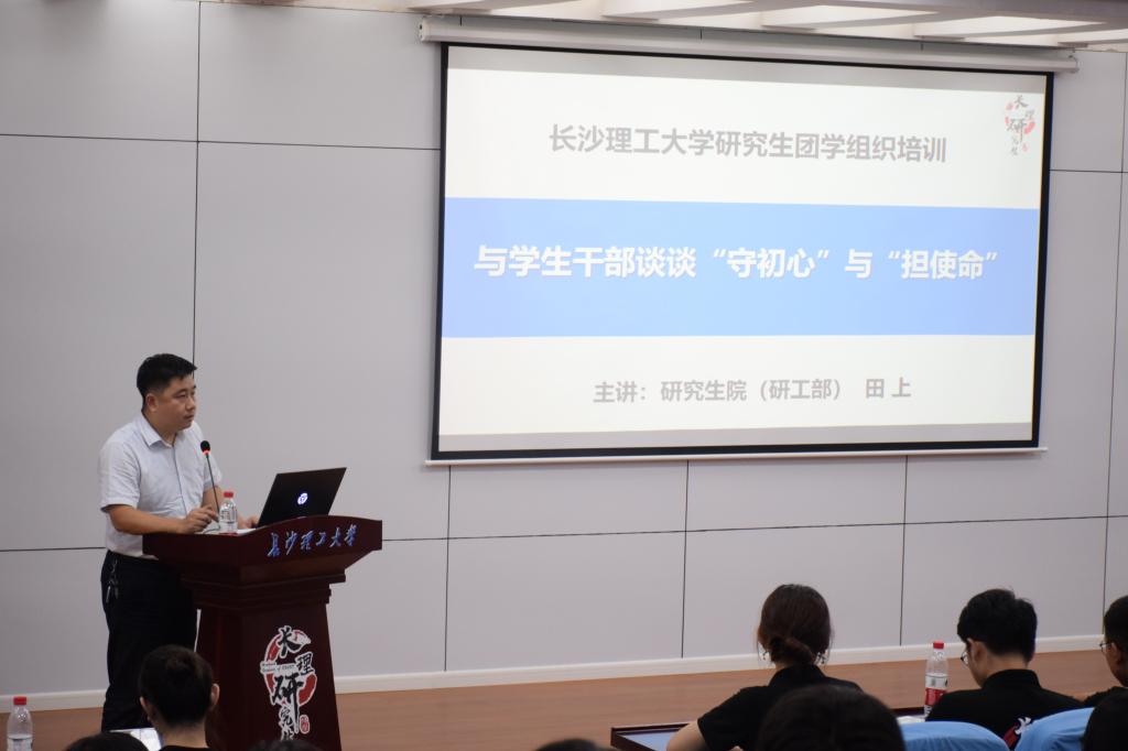 田上以“与学生干部谈谈‘守初心’与‘担使命’”为主题开讲第一课。他首先围绕习近平总书记对我国研究生教育做出的重要指示,分析研究生教育当前所处的历史背景。并指出学校第四次党代会提出LETOU官网“迈入了本科、研究生教育‘双主体’、协同发展的新阶段”,研究生教育面临前所未有的新机遇,研究生干部应主动作为团结带领全体研究生为实现决胜建成百强大学的长理梦而奋发有为。其次,他对研究生干部提出了六点要求:一是要政治可靠,爱党爱国,立场坚定,做“政治上的明白人”。二是要澄清初心,把真心实意地为同学们服务作为担任学生干部的动机和出发点。三是要能做表率;无论在学习还是工作中都应该勇挑重担,严于律己,成为研究生中的表率。四是要敢于担当,在工作中力求做到最好,遇到困难主动解决,遭遇失误勇于承担,正确对待荣誉利益。五是要主动作为,勇于创新,做个有心人。六是要锤炼作风,培养良好的工作习惯,注重理论学习,提前制定计划,按时完成任务,及时思考总结。最后,田老师希望研究生干部能秉承“博学、力行、守正、拓新”的校训,做“底色亮、实践强、有情怀、敢担当”的长理研究生,不负青春,不负韶华,不负时代。