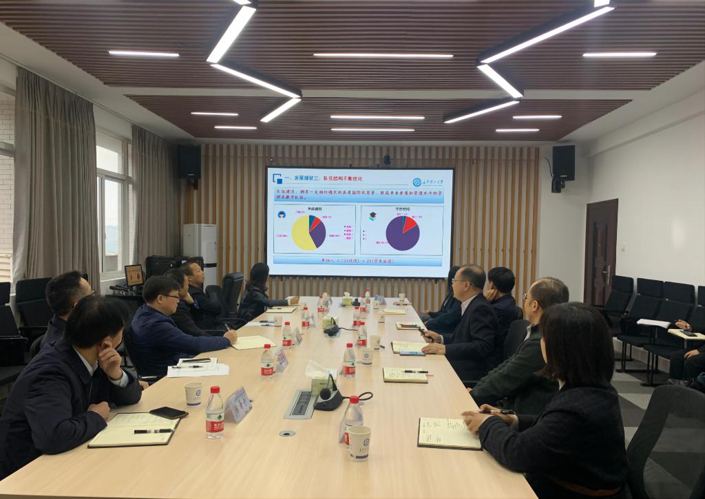 刘安生代表学院对刘建民一行表示热烈欢迎。他简要介绍了学院的与会人员、师生构成情况、机构设置情况及整体办学情况。吴迪龙代表学院感谢三个职能部门长期以来对学院的指导与支持。他详细汇报了学院发展现状、面临的机遇与挑战、“十四五”规划发展思路、发展定位、发展目标、具体建设目标、发展举措以及下一步工作打算。与会人员围绕学院的人才培养、办学场地保障、院聘人员与外籍人士参与教育教学的信息化管理、涉外图书采购等问题进行了充分的沟通与交流。