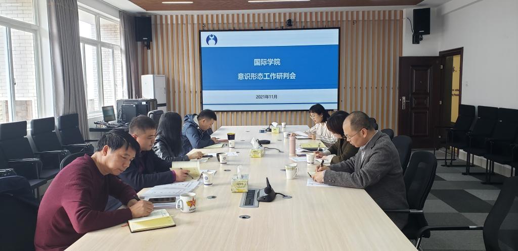 11月18日上午,国际学院在院会议室召开意识形态工作专题研判会议。会议由党总支书记刘安生主持,党政领导班子成员、党支部书记、学生辅导员参加会议。