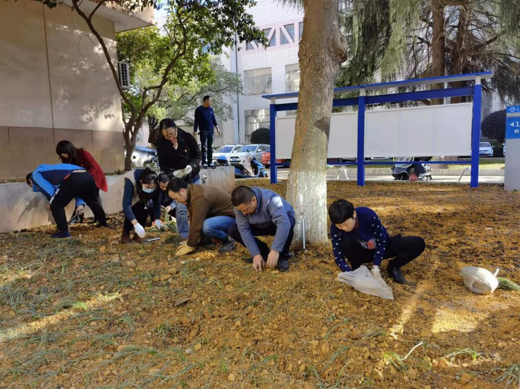 11月30日下午,继续教育学院在金盆岭校区14教正前坪开展了校园花草义务种植劳动的主题党日活动,学院教职工党员积极参加。