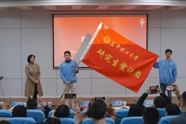 演讲比赛现场还举行了研究生宣讲团授旗仪式。在场领导和观众观看了研究生宣讲团筹建成果展示视频。随后,校党委委员、党委宣传部部长方琼发表讲话。方琼对校研究生宣讲团的正式组建表示热烈的祝贺,对宣讲团的前期工作给予了高度肯定。她对宣讲团的工作提出了三点要求,一是要加强相关理论学习并提升相关能力;二是要发挥引领作用,为决胜“百强”大学建设和担当民族复兴大任汇聚青春力量;三是要提升宣讲效果,创新形式,丰富内涵,增强宣讲工作的吸引力和感染力。