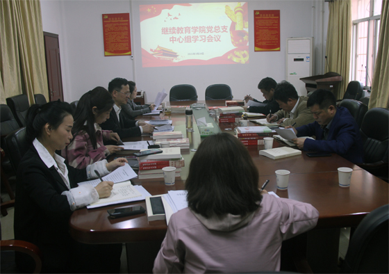 3月10日上午,继教学院党总支中心组成员在金盆岭校区15教三楼会议室召开了党总支会议,研究落实2022年党建工作计划,随后召开党总支中心组学习研讨会,学习习近平总书记在中央党校中青年干部培训班上的重要讲话和在十九届中央纪委六次全会上的重要讲话,学习学校新修订的《学院党委(党总支)会议议事规则》《学院党政联席会议议事规则》。本次党总支会议暨中心组学习研讨会由何纯芳书记主持,何纯芳书记和邹兴平院长做主题学习发言,学院总支委员参加会议。