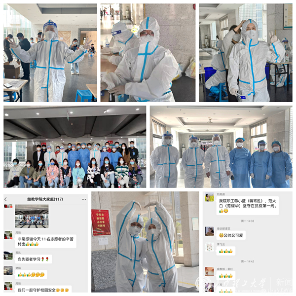 化身“大白”和“小蓝”是辛苦的,工作的时候没法喝水、没法上厕所,遇到手机操作不熟练的老人、出现不适症状的检测者等突发状况还要耐心解释帮助、积极主动应对。但辛苦的工作中,也会有很多暖心和温情的时刻:比如,常常会听到检测完的师生们道的那声“谢谢”、“辛苦了”;比如,医护人员会不经意提起,他们都很愿意被派到长理来检测,因为我们这的师生秩序好、愿配合;比如,院工作群里总会有同事们的加油和鼓励;还比如,工作完成后,拍一张照片纪念自己的“大白”“小蓝”时光……一切的一切都因有“抗疫必胜、永不言败”的信念和决心而变得值得和美好。