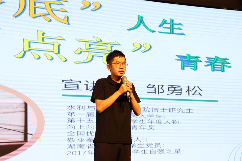 “我知道我的时间会比一般人短,所以没有理由做一个怨天尤人的'愤青小伙',更没有资格做一个得过且过的'佛系青年'!”全国优秀大学生,水利工程学院博士研究生邹勇松的亲身讲述和感人事迹更是令在场研究生无不动容和感佩。
