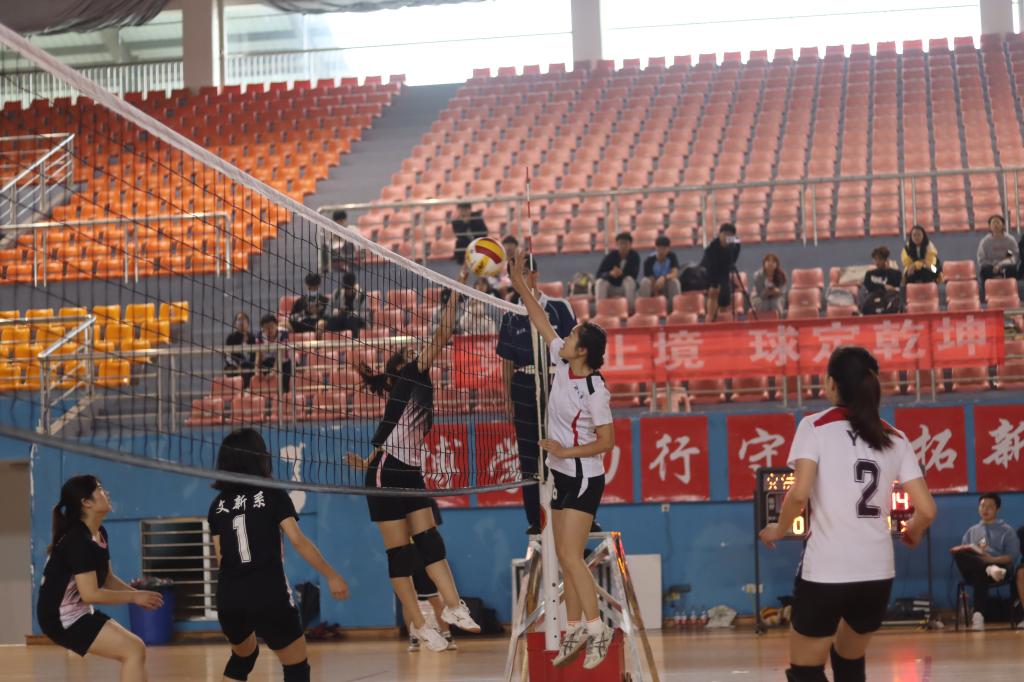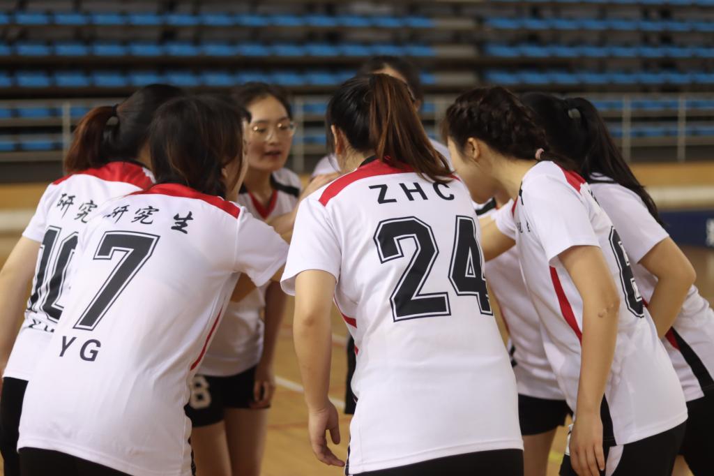 决赛现场,鼓声石破天惊,加油呐喊的余音回荡整个赛场。研究生院与文法学院女排决赛随着裁判员一声哨响正式开始。研究生女排选手一个快攻扣杀球取得开门红,而文法学院也不甘示弱,比分互相咬的很紧。研究生女排2号选手发球,威力十足,打乱文法学院战术阵脚导致一传、二传频频失误,研究生女排连续赢得6个球,取得16:10比分优势。女排队员气势恢宏,打得气血满满,顺利拿下第一局比赛。双方交换比赛场地进行第二局比赛。研究生院女排配合默契,洞察对方站位缺陷,打出一个又一个精彩好球,一直处于领先优势。而文法学院女排在大比分落后的情况下进行两次暂停,调整战术,她们打出不气馁、不放弃的运动精神,一度追平比分,但依旧抵抗不住研究生女排正面的扣杀球和巧妙的吊球。最终研究生女排连下两局,夺得冠军,实现了“三连冠”!