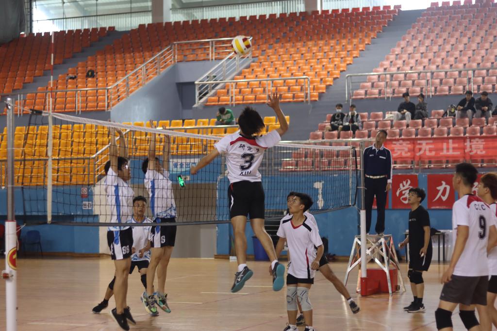 紧接着是更为激烈的男排决赛,这也是研究生男排组建以来首次打入决赛。在第一局比赛中,对于水利学院男排的短传快攻扣球,研究生男排的双手犹如铜墙铁壁,多次直接拦下,打得出其不意。比赛逐渐白热化,双方扣球的都能稳健接起,研究生男排一个小失误,导致触手接球打出界限,水利学院趁着气势拿下第一局比赛。研究生男排调整战术策略进行第二局比赛,打出了“奋力拼搏,火力全开”的劲力头。水利学院一个跳跃正手发球,研究生男排一传一个箭步接起,二传选手一个后仰传球,随后3号选手的扣杀姿势惊艳在场观众,他的手、腰板和双脚所展开的弧度犹如拉满的弓箭,“啪”闪电般的挥拍,球在空中似乎划出了火花一样,打到对方场地底线拿下一分,全场观众高呼呐喊,鼓声雷动。遗憾的是,第一次杀入决赛的研究生男排大赛经验不足,最终与冠军失之交臂,获得亚军。