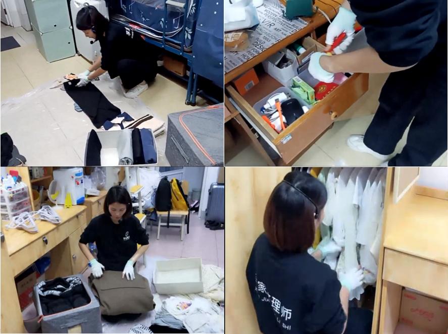 本次直播环节先通过照片及视频给观众展示了部分优秀研究生宿舍的风采,接着收纳师专家对分类、折叠、整理及收纳的技巧进行了简单的教学,如何通过收纳的“五步法”更好地达到节省空间的目的,从而得到一个干净整洁有条理的居住环境。