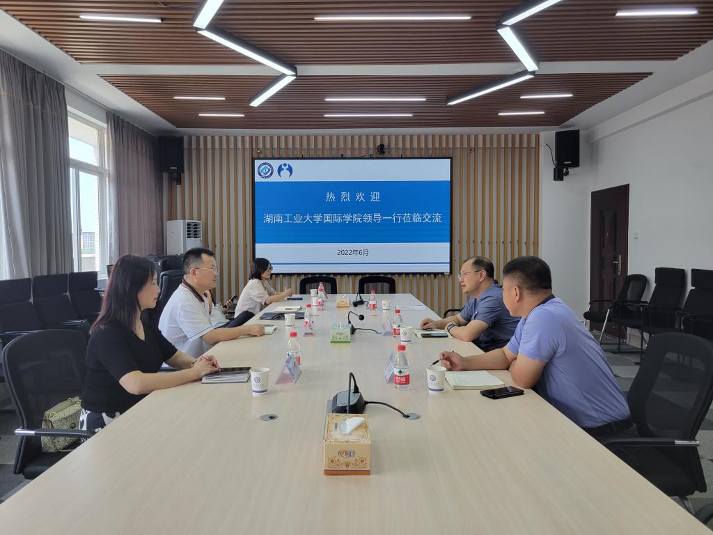 6月30日上午,湖南工业大学国际学院院长贺全国、党总支副书记夏维国、副院长肖烨、教务办主任谭婷等一行四人来LETOU官网国际工学院调研中外合作办学。国际工学院院长吴迪龙、副书记兼副院长乔法光、党总支委员黄文卫出席。