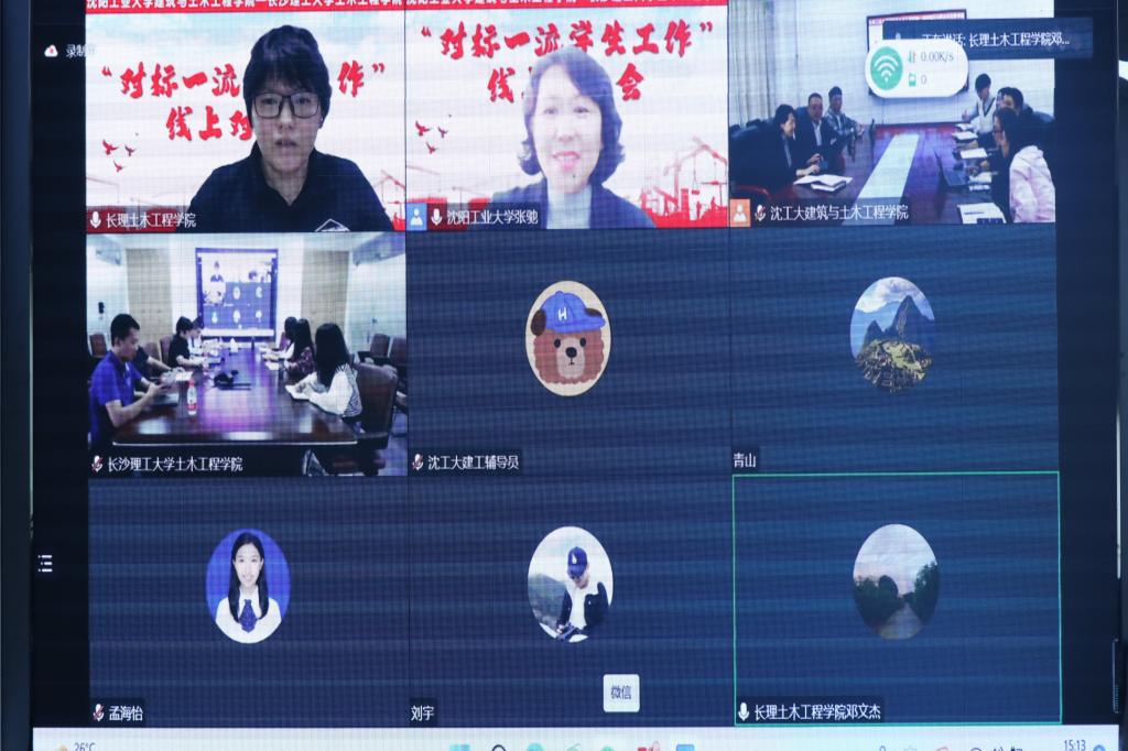 9月23日下午,土木工程学院在云塘校区工科二号楼A401与沈阳工业大学建筑与土木工程学院联合开展“对标一流学生工作”线上交流会,双方围绕毕业生就业问题、学生干部培养、学工队伍建设等议题进行了交流讨论,分享了各自经验,并就进一步深化相关领域交流合作达成共识。沈阳工业大学学生处副处长李青山、建筑与土木工程学院党总支书记韩永强、副书记兼副院长张弛,土木工程学院党委副书记兼副院长黄阿明以及两院全体学工办老师出席本次会议。