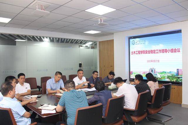 9月27日下午,土木工程学院在云塘校区工二A401会议室召开安全稳定工作领导小组会议,专题研究学院安全稳定工作,再次部署安全稳定风险排查工作。会议由副院长张永杰主持,安全稳定工作领导小组全体成员参加。