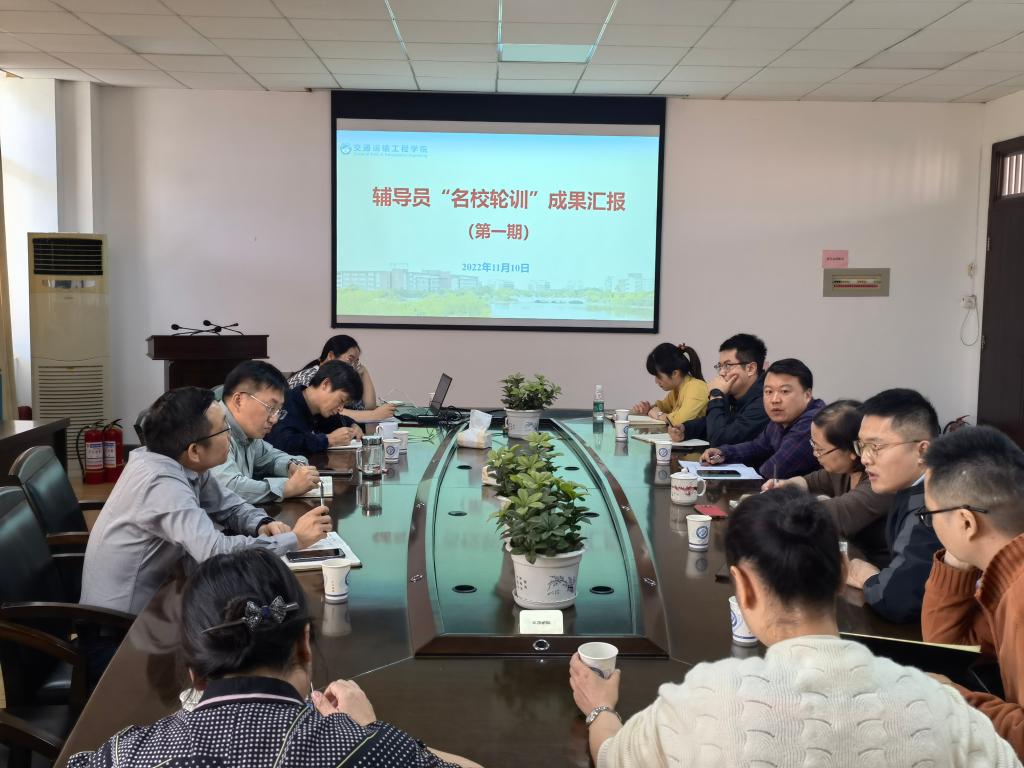 11月10日,交通学院在工二B413开展辅导员“名校轮训”成果汇报交流会,院党委书记刘朝辉、院长张军辉、副书记涂道勇、各行政办公室科长及全体辅导员参加,辅导员肖敏强汇报其在中南大学长达两个月的学习成果。