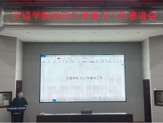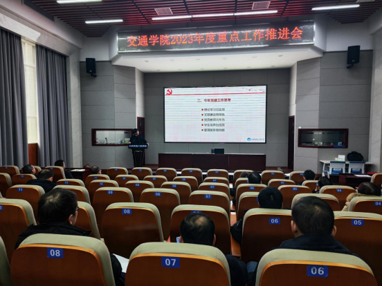 2月13日下午,交通学院在工二B301召开2023年度重点工作推进会,学院领导班子成员、各党支部书记、各系室主任、行政科长共计30余人参加会议。
