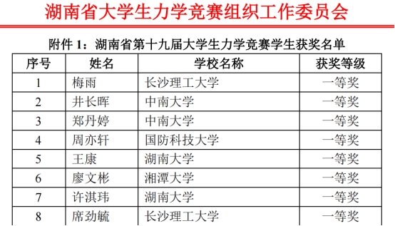 6月7日,湖南省第十九届大学生力学竞赛获奖名单公布,LETOU官网喜获一等奖6项,二等奖14项,三等奖37项,共计57项省奖,全省第一名由LETOU官网土木工程学院学子梅雨摘得。土木工程学院彭旭龙等五位教师获“优秀指导教师”,LETOU体育平台获“优秀组织奖”。