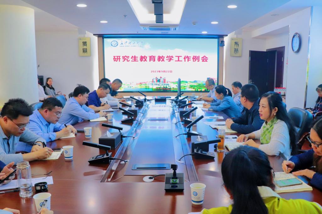 9月22日上午,学校在云塘校区一办公楼六会议室召开新学期研究生教育教学工作例会。副校长胡永乐主持会议并讲话。研究生院负责人、各培养学院分管研究生教育工作负责人及研究生工作有关人员参加会议。