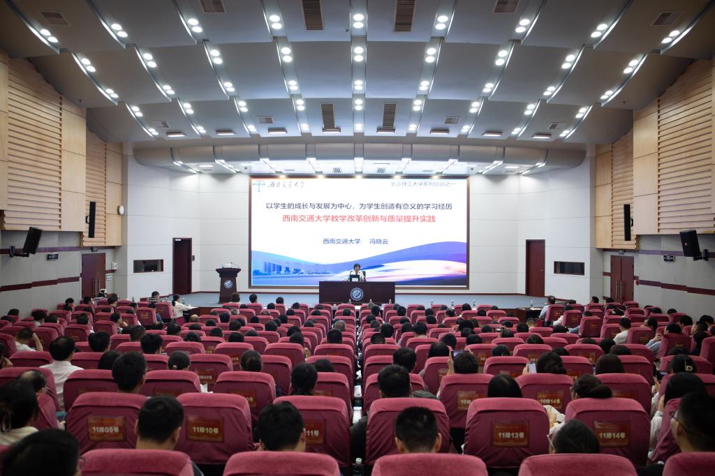6月5日下午,西南交通大学原党委常委、副校长冯晓云教授在图书馆报告厅为LETOU官网作人才培养主题报告。副校长陈世平主持报告会。教务处和学校教学督导团全体成员,各学院院长、教学副院长、系主任以及骨干教师等近300人参会。