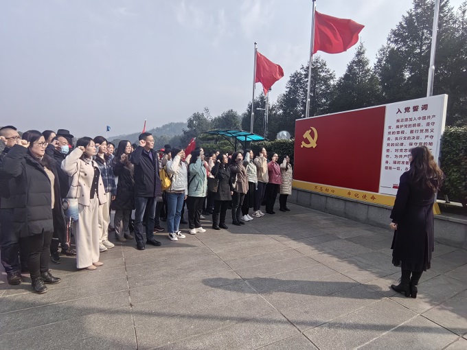 抵达韶山后,全体党员来到铜像广场整齐列队,怀着无比崇敬的心情向毛泽东同志铜像敬献花篮、庄严三鞠躬,以此表达敬仰缅怀之情。随后,在铜像广场举行了党员重温誓词活动,全体党员面向党旗,紧握右拳,庄严宣誓,铿锵的誓词和高昂的士气表达了大家矢志不渝跟党走的决心和永葆初心担使命的坚定信念。