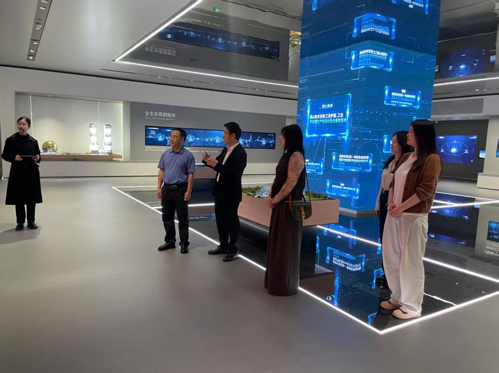 在中国联合工程有限公司,学院一行参观企业文化展厅并与公司第二工业设计研究院常务副院长匡中付,以及相关部门负责人开展座谈。匡中付介绍了企业发展历程、业务范围、人才培养路径以及公司在“一带一路”沿线国家的涉外工程布局及国际化人才需求,强调既需具备扎实专业能力的工程技术人才,也需拥有跨文化沟通能力的复合型人才。黄自力介绍了学校国际化发展情况、学院国际化人才特色培养体系以及毕业生在海外工程项目中的就业优势。双方围绕行业发展趋势、企业人才培养机制及“一带一路”涉外工程人才需求展开深入探讨,在共建海外实习基地、开设“一带一路”工程案例课程、联合开展跨国项目研究等合作达成共识。匡中付表示,学校与学院的国际化办学定位与公司海外业务高度契合,期待通过校企协同培养一批“懂技术、精规范、通语言、善协作”的海外工程精英。