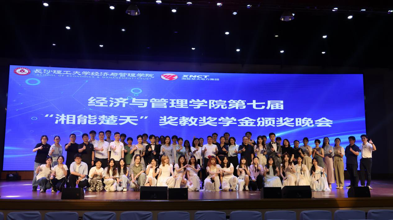 5月27日晚,经管学院第七届“湘能楚天”奖教奖学金颁奖晚会在五教大礼堂举行。湘能楚天电力集团董事长陈伟其、党支部副书记王丽杰,校党委委员、副校长刘朝晖,校友中心主任唐青,创业就业指导处副处长贺佐杰,校团委副书记陈璐莎,经管学院全体班子成员、全体辅导员、专业老师代表和学生代表上千人齐聚一堂,共襄盛举。
