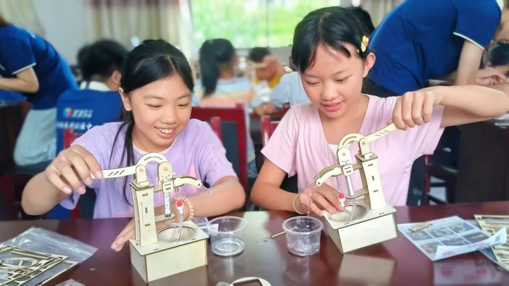 轻轻按下手柄,清澈的水流便应声涌出……7月14日,在张家界市桑植县走马坪白族乡走马坪村,物理与电子科学学院“小小科学家”乡村振兴科普教育团队的成员们,正带领乡村儿童亲手组装和操作手压抽水机。伴随着孩子们阵阵惊呼和掌声,一堂别开生面的乡村科普课堂正热烈展开。“沙漠探险,发现一口抽水机,若将一旁的瓶装水... 【2025-07-16】