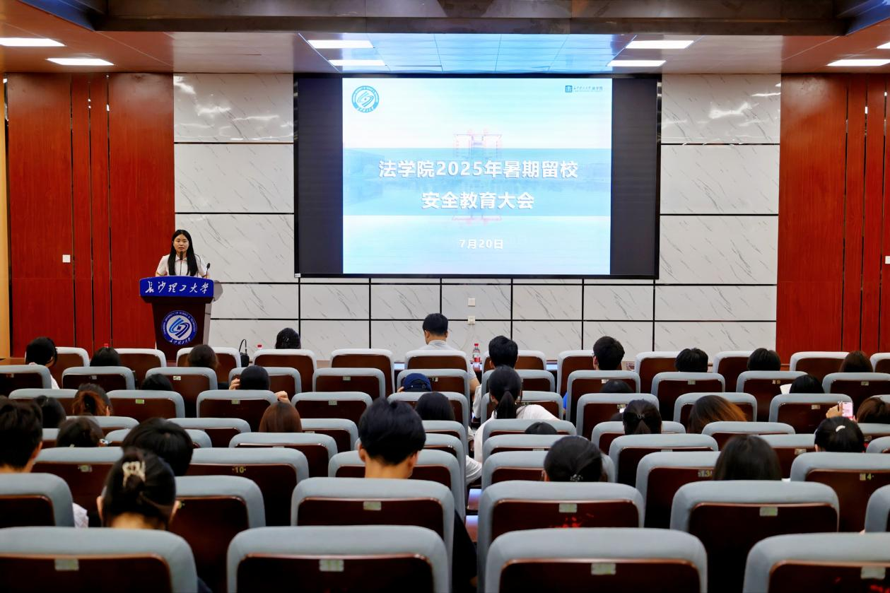 为进一步强化学生安全防范意识,规范留校安全管理,7月20日下午3点,法学院在金盆岭校区四号教学楼报告厅举行暑期留校安全教育大会。学院党委副书记汪伦、本科生党支部书记孙佳乐和全体暑期留校学生参会,研究生辅导员曾宇欣主持会议。会上,曾宇欣就暑期留校相关事宜进行了细致讲解,明确了留校期间的日常管理规范。她... 【2025-07-20】