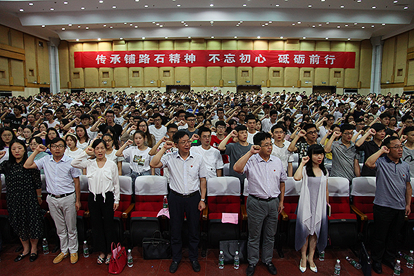湖南省大学生百佳党员、计通学院本科生郑伟带领现场全体党员重温入党誓词,并代表全体毕业生党员庄重承诺要牢记党员的责任与使命,坚定“四个自信”,践行“八字箴言”,传承好铺路石精神,向党和人民、向母校交出最好的答卷。