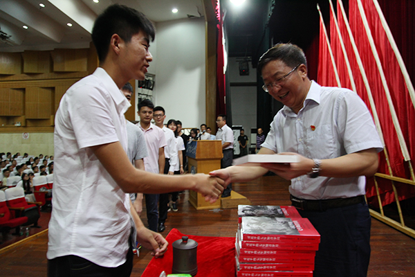 付宏渊向全体毕业生表达了祝福:飞鹏正举,行者无疆,愿你们健康平安幸福,愿你们有一个美好的前程!讲课结束后,付宏渊向毕业生党员代表赠送了《习近平的七年知青岁月》,希望广大毕业生党员学习总书记的成长之路,扎根基层、苦练本领,早日成为国家的栋梁之才。
