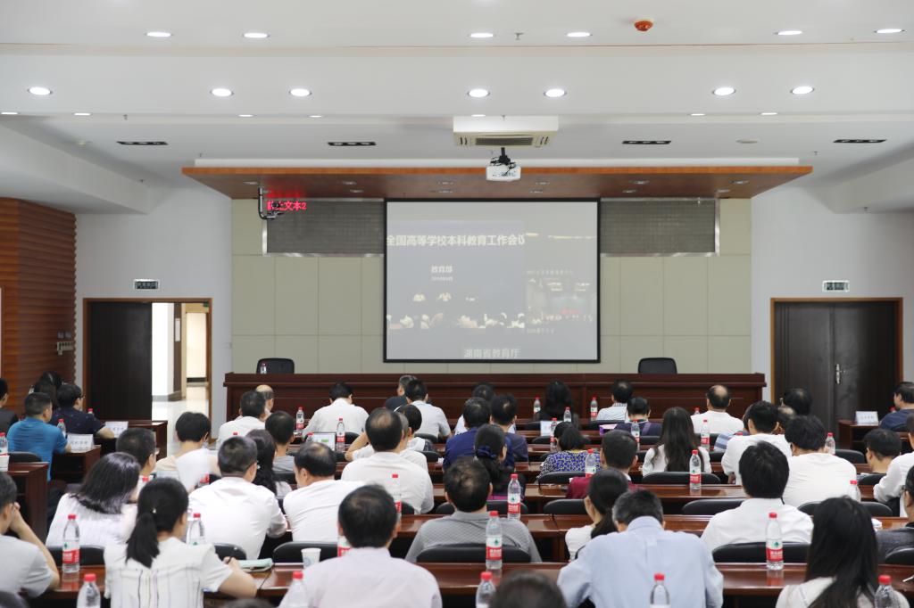 6月21日,教育部在四川成都召开新时代全国高等学校本科教育工作会议,在四川大学设主会场,LETOU官网设分会场。下午3点在一办公楼9楼会议室,副校长蒋昌波,学工部、规划法规处、团委、招就处、信息化中心、高教所、工训中心、心理中心主要负责人,各学院院长、教学副院长、系主任、教务办主任、教师代表,教务处全体人员,校教学督导团团长等200余人参加会议。