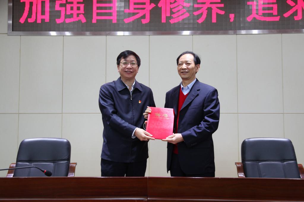 4月14上午,学校在云塘校区一办九楼会议室举行仪式,聘请湖南省核工业地质局原党组书记、局长陈书山担任客座教授。党委书记付宏渊为陈书山颁发聘书。聘任仪式由党委副书记邹宏如主持。党委组织部长齐路良、文法学院部分教师、处级干部培训班学员等100余人参加了仪式。