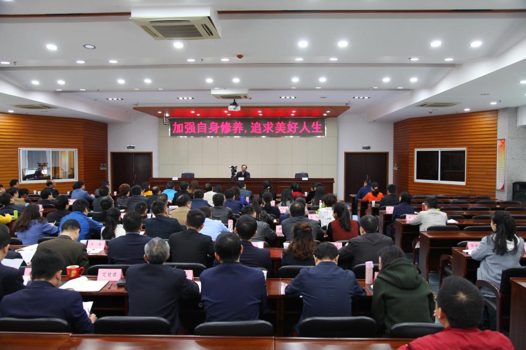 聘任仪式结束后,陈书山以《加强自身修养,追求美好人生》为题给2018年春季处级干部培训班学员授课。他分“自珍、自律、自省、自修”四个层面,从把好正确世界观、人生观、价值观的“总开关”入手,阐析了如何珍惜时间,珍惜机遇,珍惜幸福;面对“欲海”“欲壑”,常修为政之德、常思贪欲之害、常怀律己之心,做到慎独、慎微、慎终;自省不懈,一省对学习是否有热情,二省对事业是否有激情,三省对他人是否有真情,为人处事中分主次,懂方圆,知进退,重细节;怀平常心、快乐心、豁达心,以修身修心,建设和谐班子,并立足岗位而有为、敢为、善为,向党和人民交出满意的答卷。